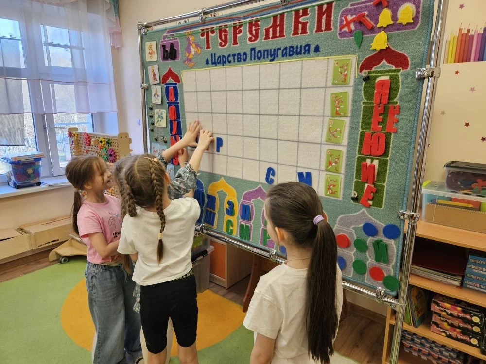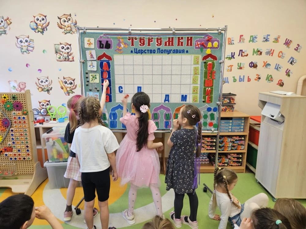 В рамках реализации проекта “Предшкола: стандарт детского сада” на тематической неделе: “Инновационные технологии и практики” в подготовительной группе 18 в течении недели были организованы подгрупповые и парные занятия с использованием дидактического пособия Воскобовича “Теремки”. Дети в игровой форме закрепляли умение делать звуко-буквенный анализ слова (гласный/ согласный, твердый/ мягкий, количество букв/ слогов в слове). Воспитанники выполняли заданию по образцу и сами придумывали слова для своей пары. А так же загадывали свое слово с пропущенной буквой. Было не легко, но очень увлекательно, интересно и познавательно. Дети успешно со всем справились!!! Воспитатели: Бондаренко Е.В., Якобсон Н.В.
