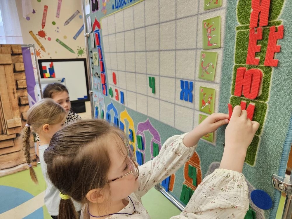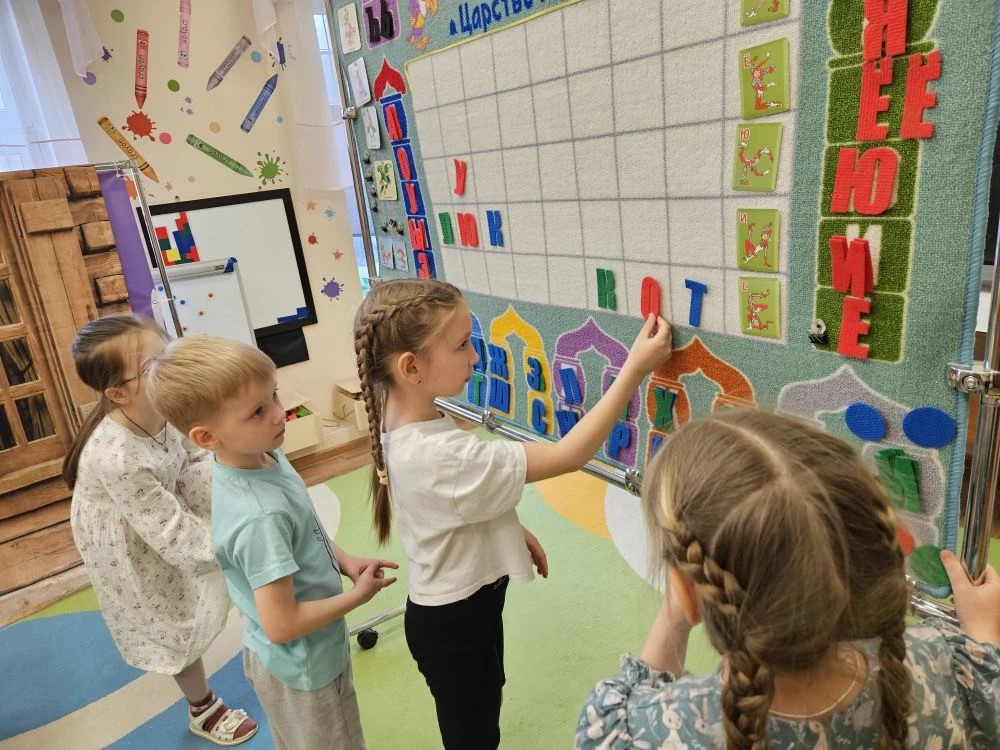 В рамках реализации проекта “Предшкола:стандарт детского сада” на тематической неделе “Мир фантазии и слов” дети группы № 18 познакомились с комплектом Буквы из многофункциональноно пособия Речь+.