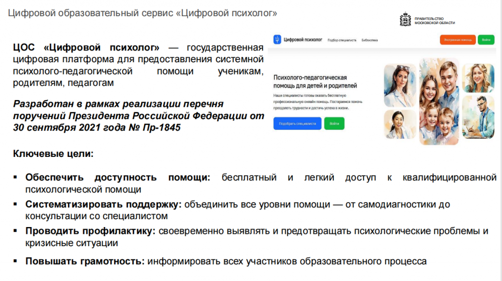 Основная цель — психологическое сопровождение и поддержка всех участников образовательного процесса.