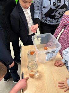 19.01-23.01.26 г. В рамках тематической недели “Экспериментариум: путь к познанию” в отделении начального образования “Эффективная начальная школа” были организованы мероприятия, напоминающие исследовательские лаборатории. Второклассники и третьеклассники исследовали свойства соли и плотности веществ с помощью воды, соли и сырого яйца. Оказалось, что в обычной воде яйцо сразу утонуло, в очень солёной — всплыло. А четвероклассники узнали, что такое поверхностное натяжение с помощью волшебной баночки, из которой не выливалась вода, а также увидели, что получается, когда горячий пар вступает в контакт с холодным воздухом и конденсируется. Эффективные гимназисты заинтересовались такими экспериментами из подручных вещей, что решили организовать исследовательскую лабораторию дома и провести опыты со своими родными и близкими. Вот какие юные исследователи в эффективной гимназии!