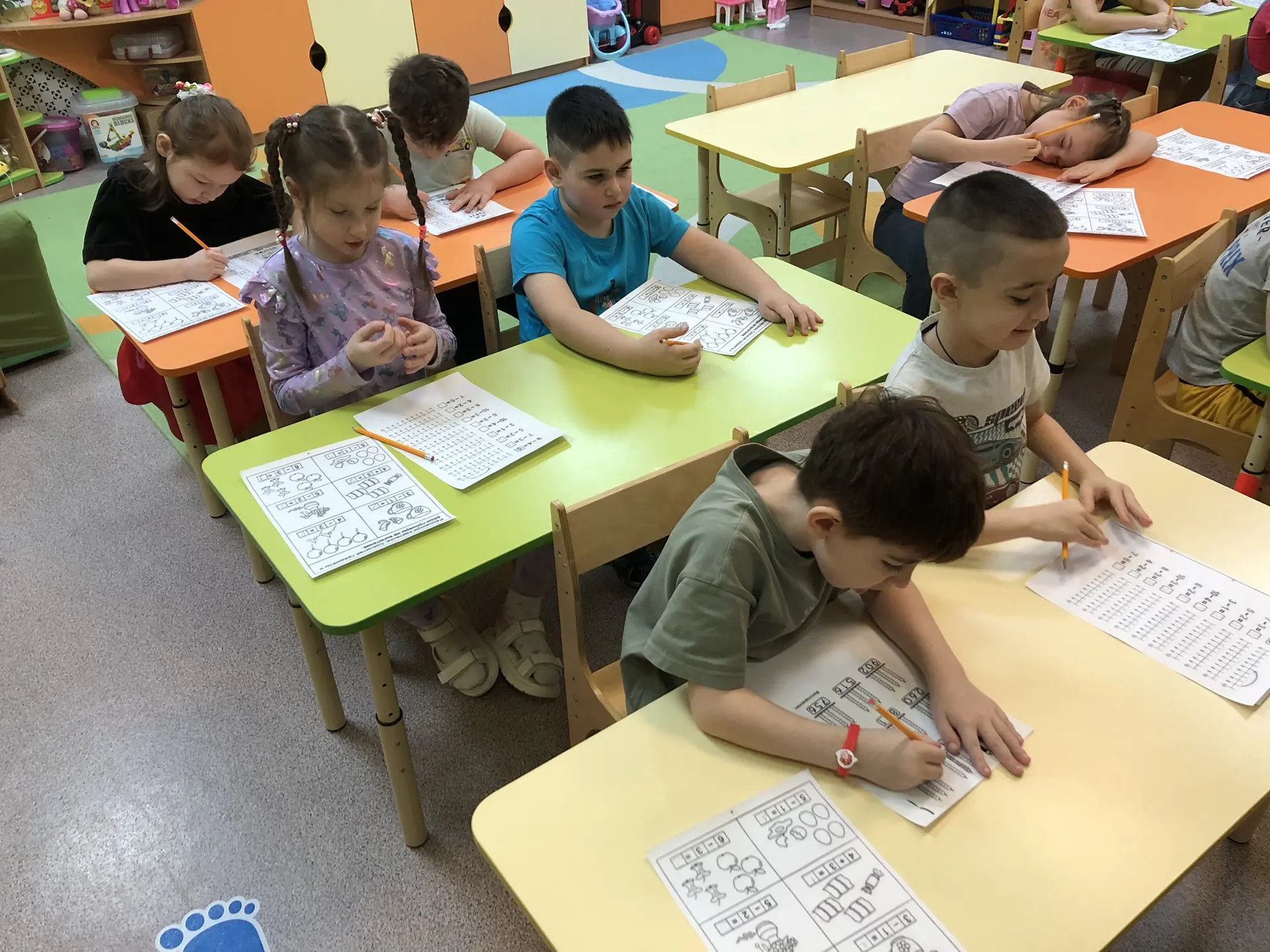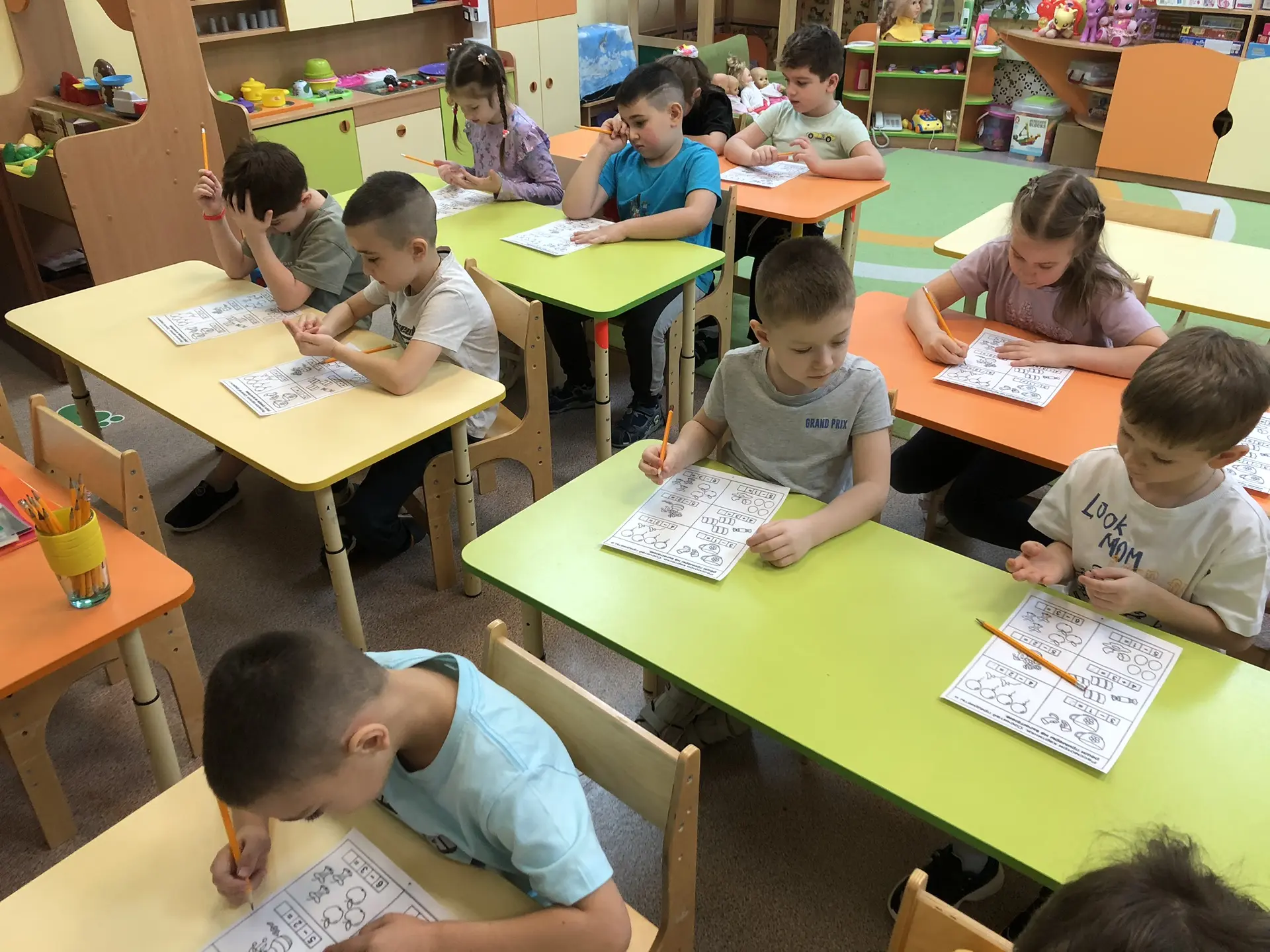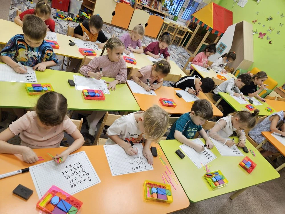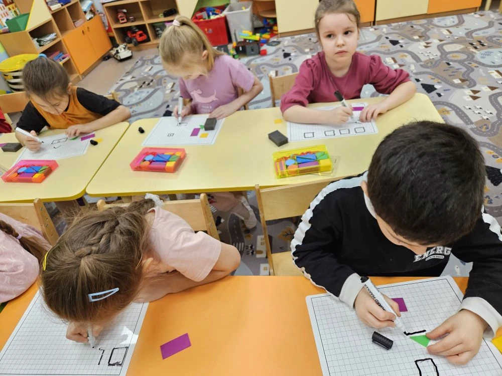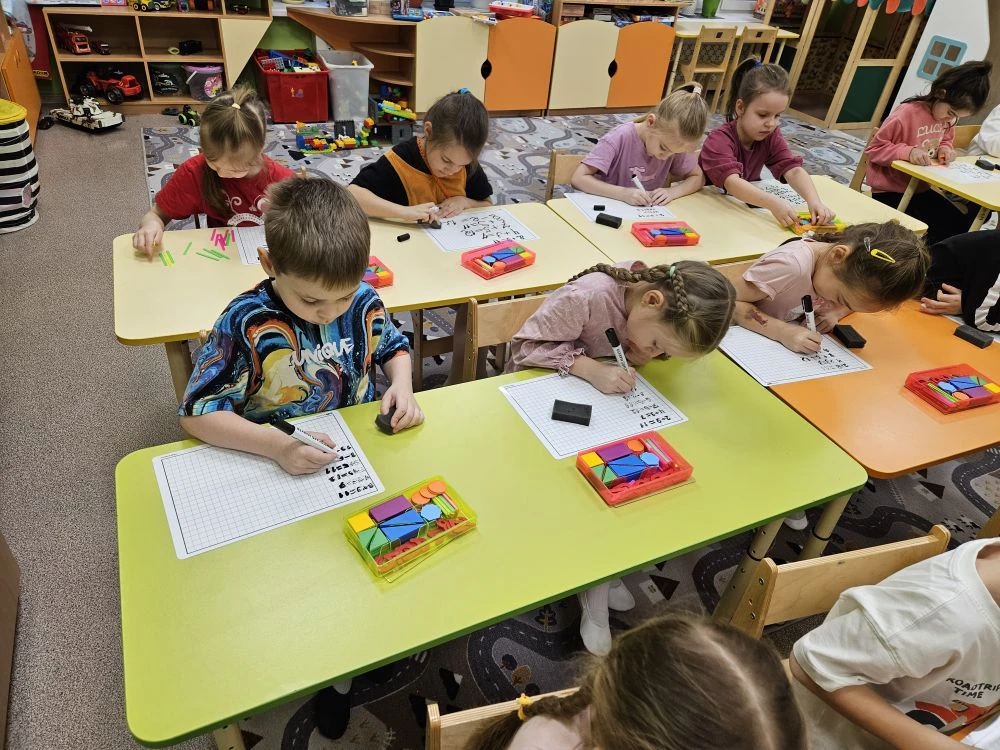 элементарные математические представления, умение слышать и выполнять последовательные инструкции. Дошкольники выполняют разные задания с интересом, что способствует подготовки к школьному обучению.