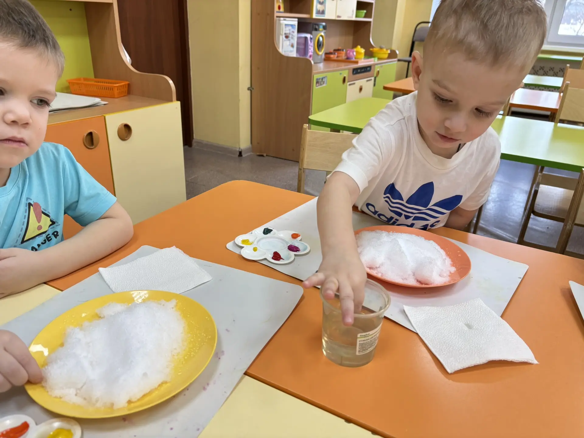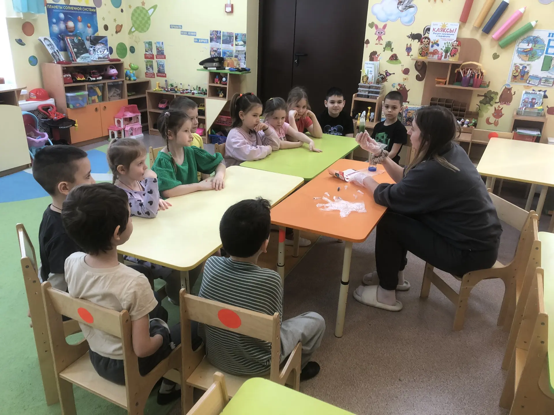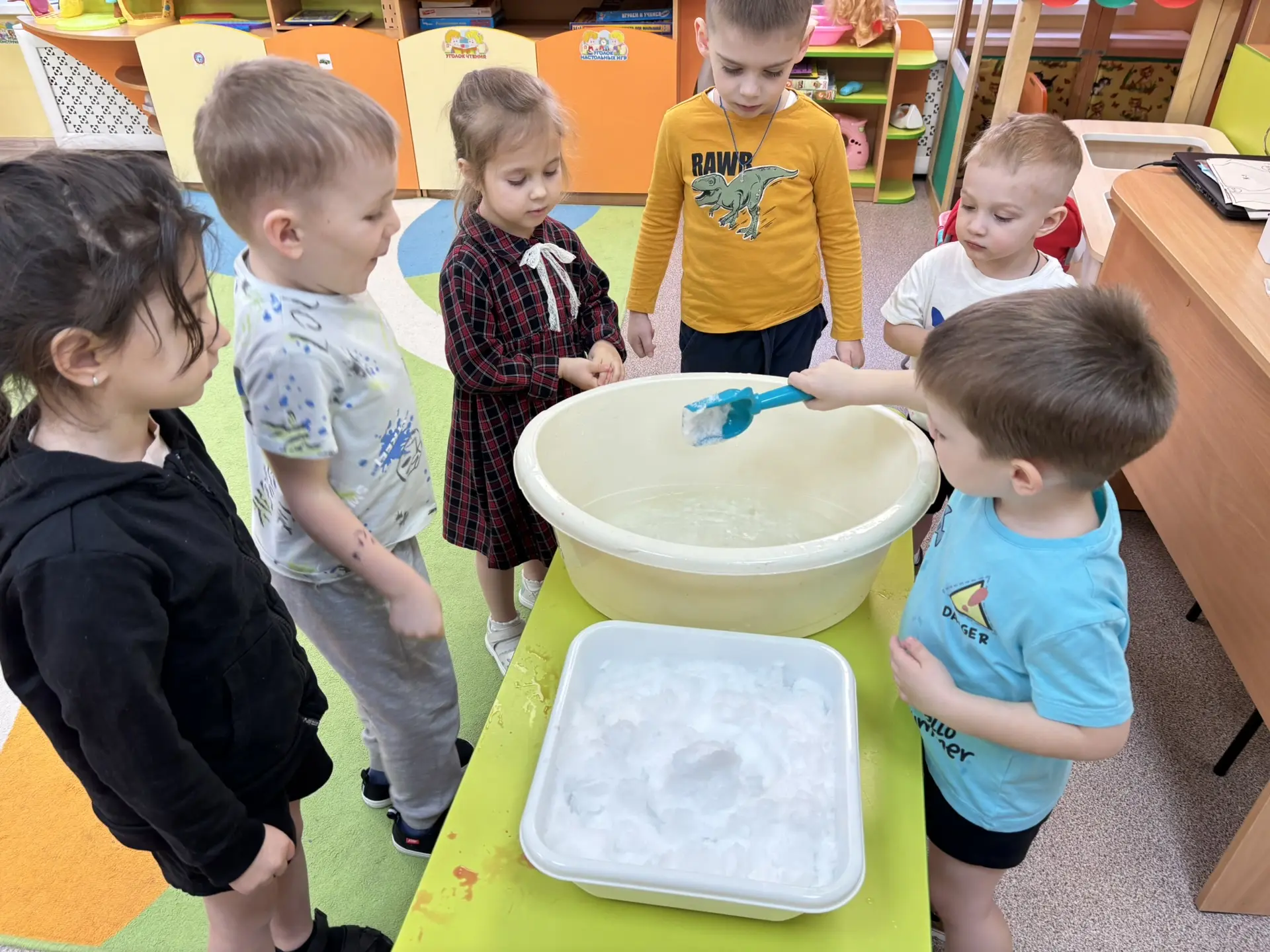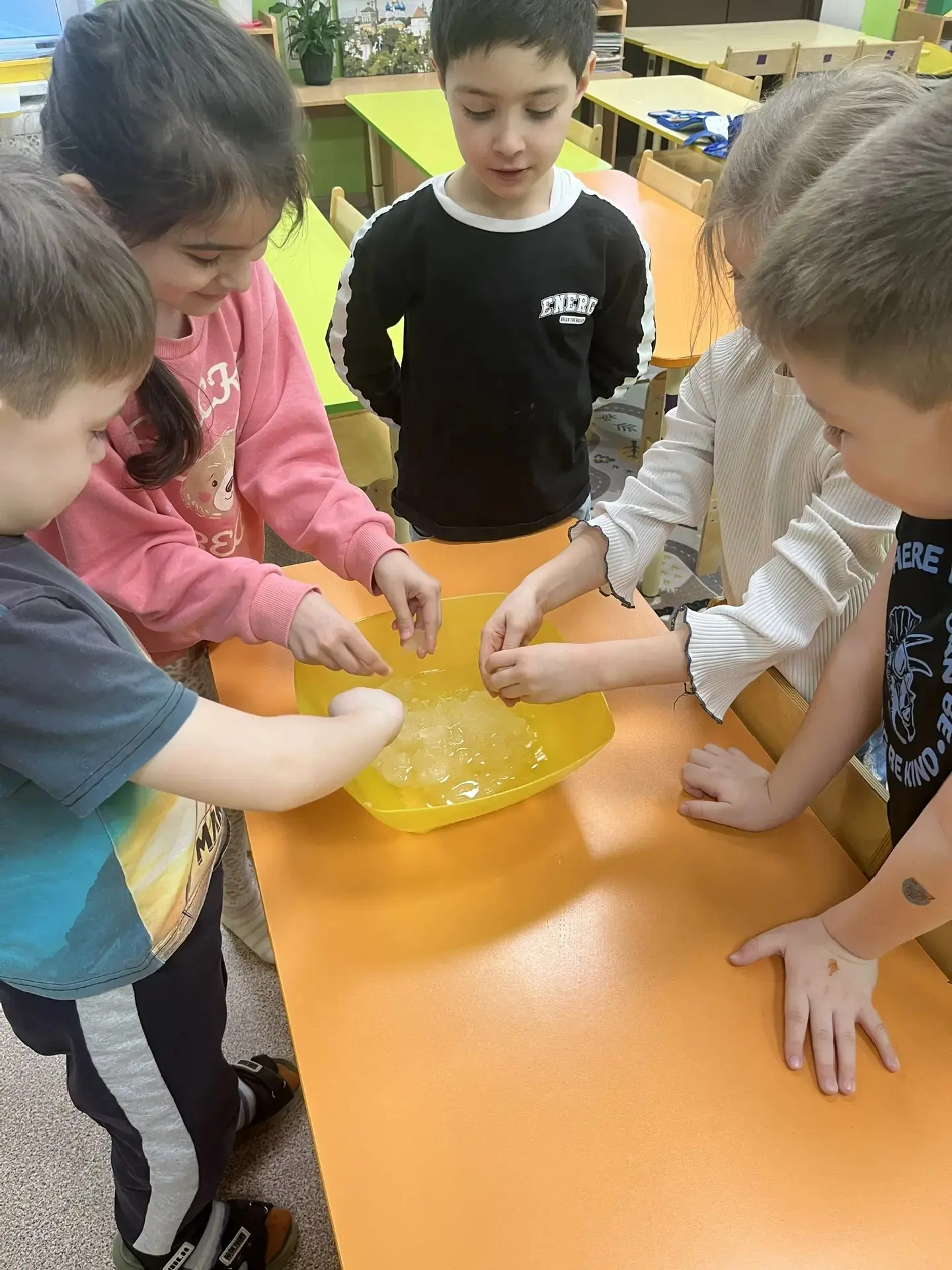 В рамках реализации проекта “Предшкола: стандарт детского сада”, на тематической неделе “Экспериментариум”, в подготовительной группе №20,провели занятие по экспериментальный деятельности «Волшебная жидкость (неньютоновская)»