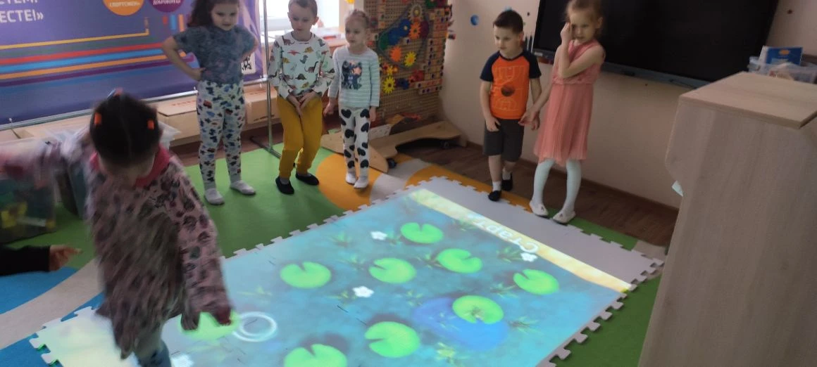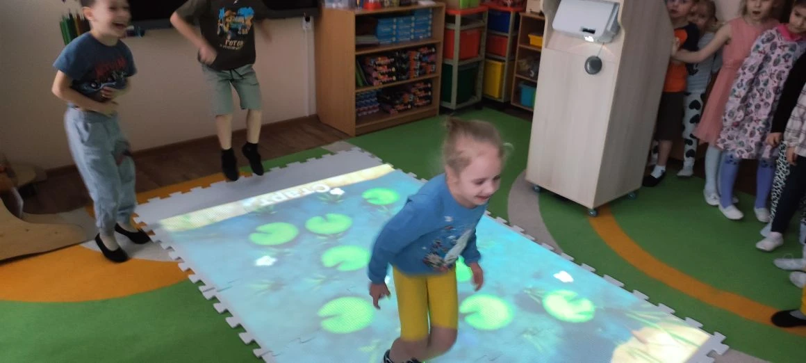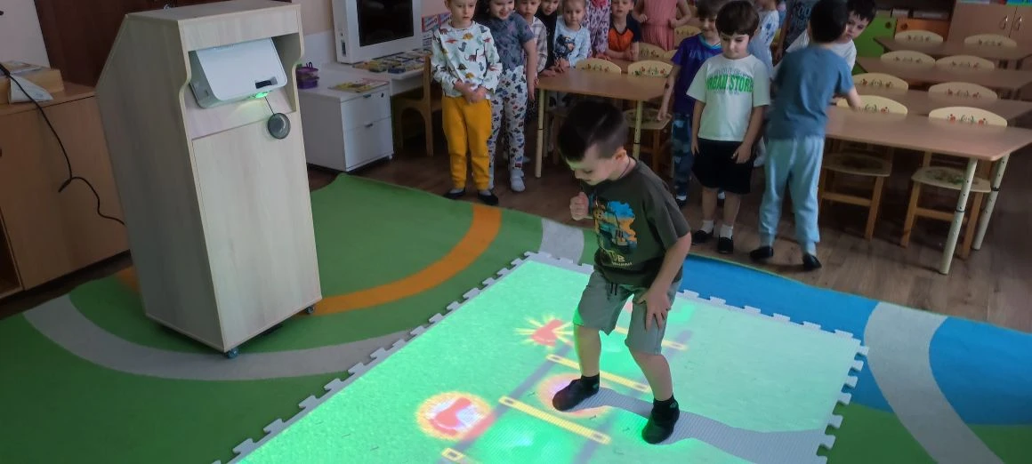 В рамках реализации проекта “Предшкола: стандарт детского сада” на тематической неделе “инновационные технологии и практики” в старшей группе прошло занятие на координацию движений у детей с помощью Интерактивного пола. Дети активно двигаются, улучшая координацию движений, ловкость и выносливость. Развивают сенсорные способности через взаимодействие с визуальными эффектами и звуковыми сигналами.Занятия становятся увлекательными и интересными, дети легче усваивают новые знания и навыки. Воспитатели: Шишкина И. А. Цветкова П. А.