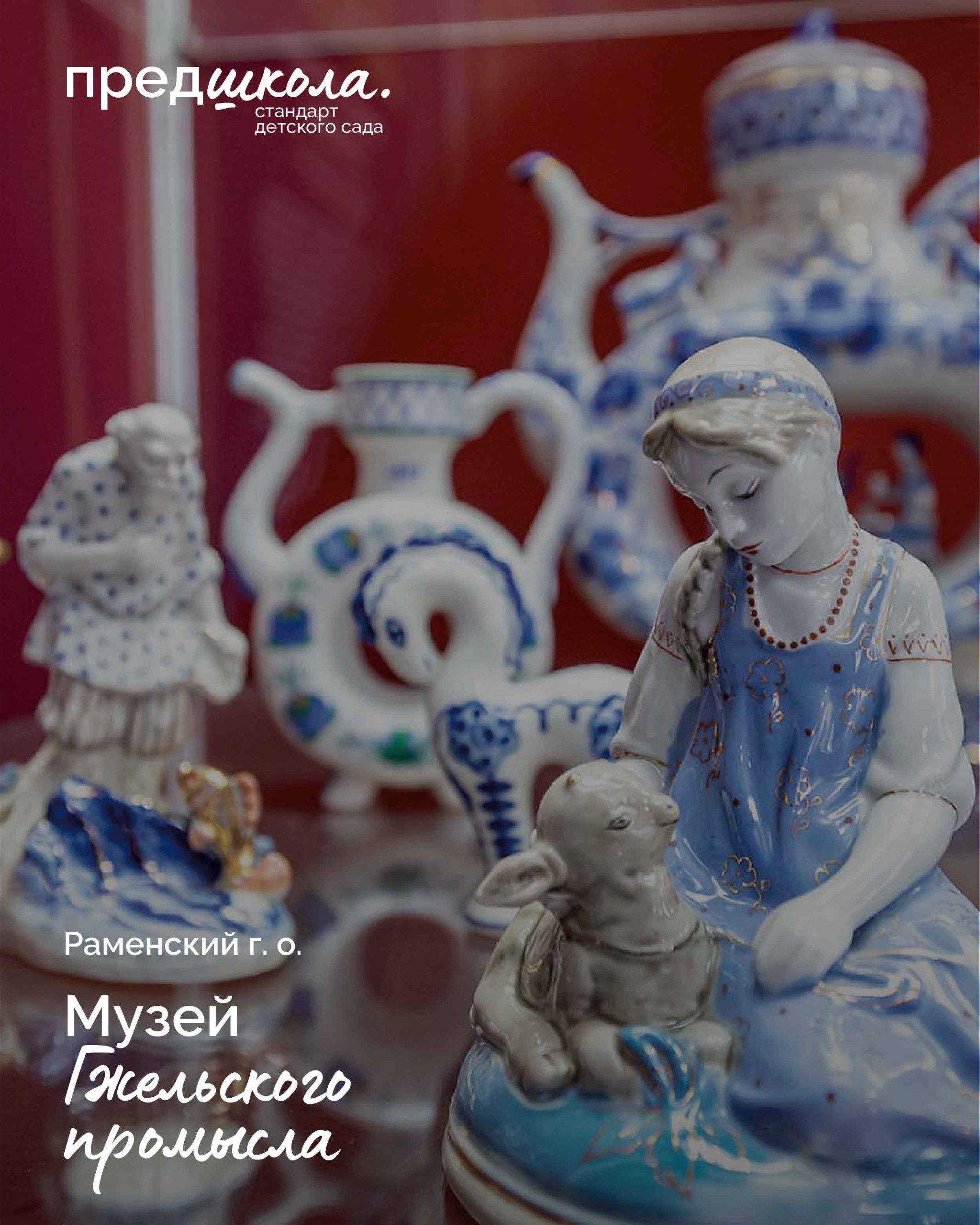 Дети посетили мини-музей декоративно-прикладного искусства сада, рассмотрели предметы быта, игрушки. Арина К. рассказала, как она вместе с бабушкой делала поделку для этого музея по мотивам гжельской росписи. Ребята с удовольствием нарисовали свою чайную пару в бело-синих тонах, отгадывали загадки, рассматривали иллютрации с Гжелью.