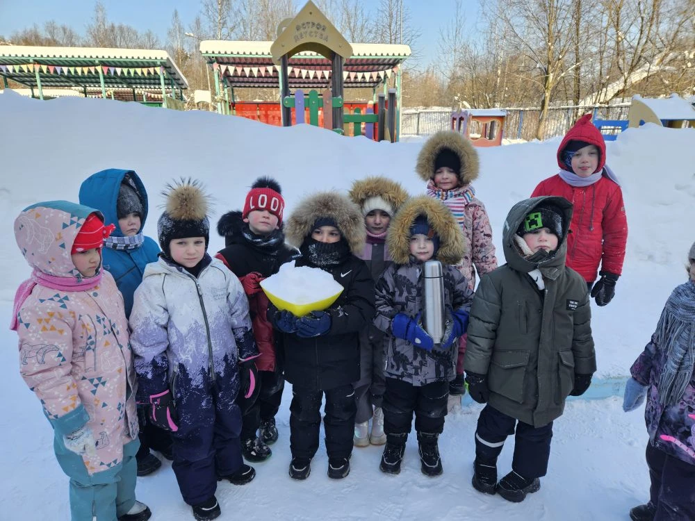 В рамках реализации регионального проекта “Предшкола стандарт детского сада” на тематической неделе “Экспериенариум” дети подготовительной группе №18 познакомились с термосом и проверили на практике его свойства проведя эксперимент со снегом. ❄❄❄Воспитанники утром на прогулке набрали на улице снег в термос и в небльшую миску, принесли в группу. В течении дня дети наблюдали за снегом. В завршении дня снег в миске растаял, а в термосе нет, лишь немного осел. И тогда ребята предложили использовать термос не только для горячего чая зимой на прогулке, но и для сохранения мороженого летом. Воспитатели: Бондаренко Е.В. Якобсон Н.В.