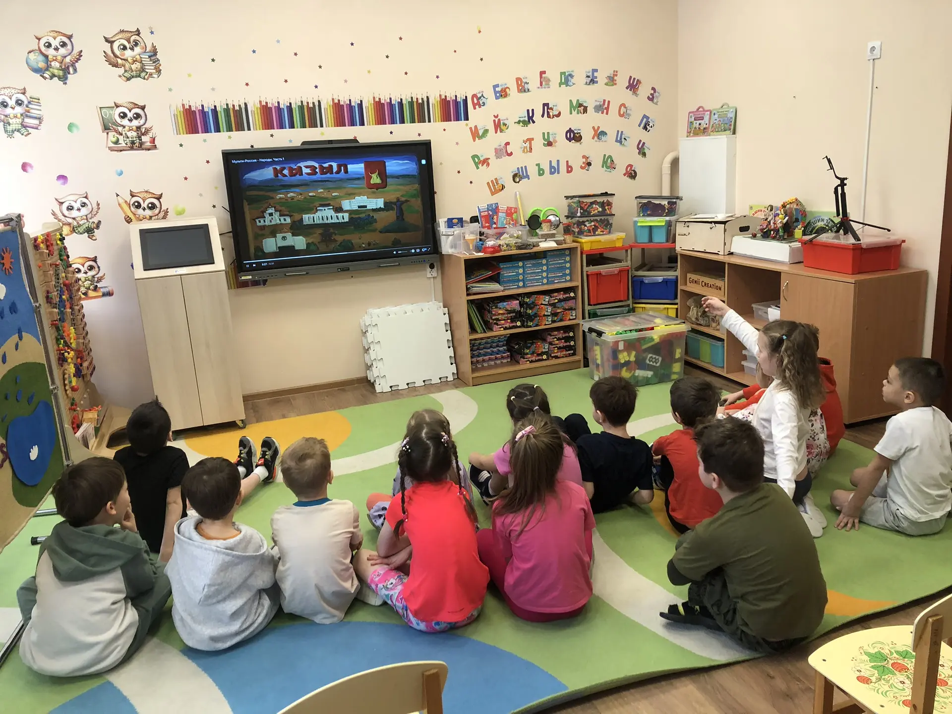 В рамках реализации проекта “Предшкола:стандарт детского сада” на тематической неделе “Мир фантазии и слов” дети группы № 18 познакомились с комплектом Буквы из многофункциональноно пособия Речь+.