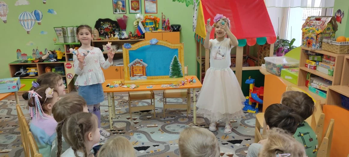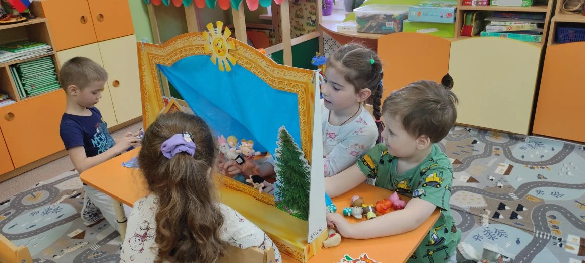 В рамках реализации регионального проекта “Предшкола: стандарт детского сада” на тематической неделе “Театр детей” в старшей группе прошёл пальчиковый спектакль “Как звери искали друзей”. Ребята придумали свою историю, помогли найти друзей, выручали зверушек из беды. Пальчиковый театр стимулировать воображение и креативное мышление при придумывании сюжета, персонажей и диалогов. Развивает связную речь и словарный запас через озвучивание персонажей и проговаривание текста. Воспитатель: Шишкина И.А. Цветкова П. А.