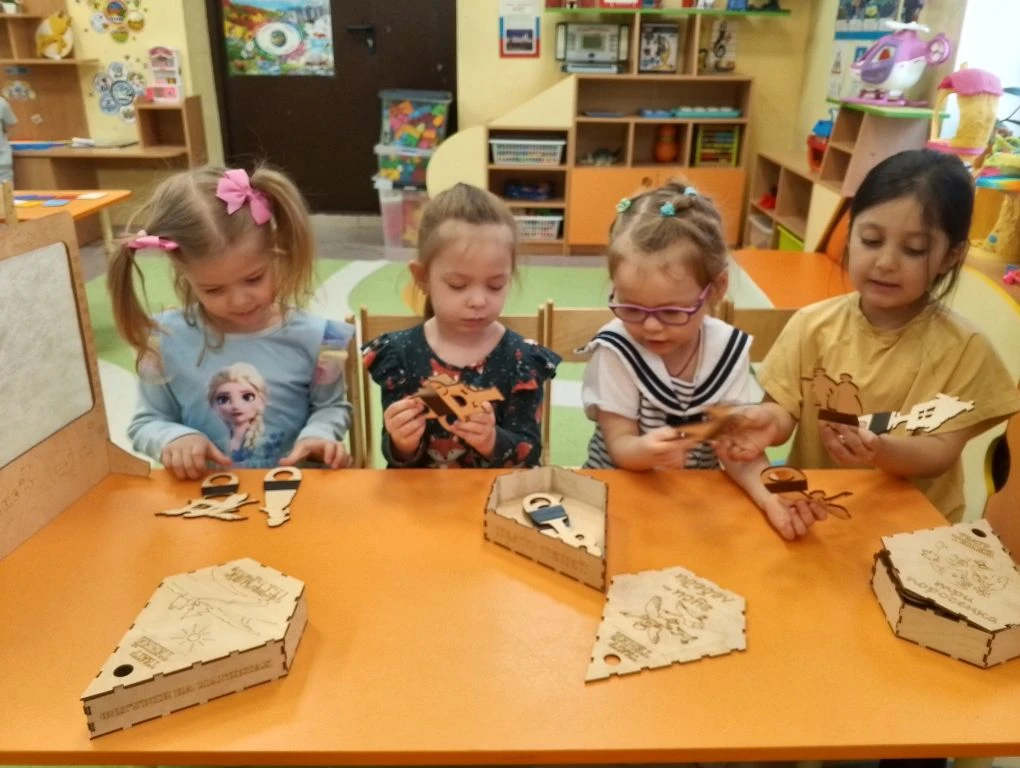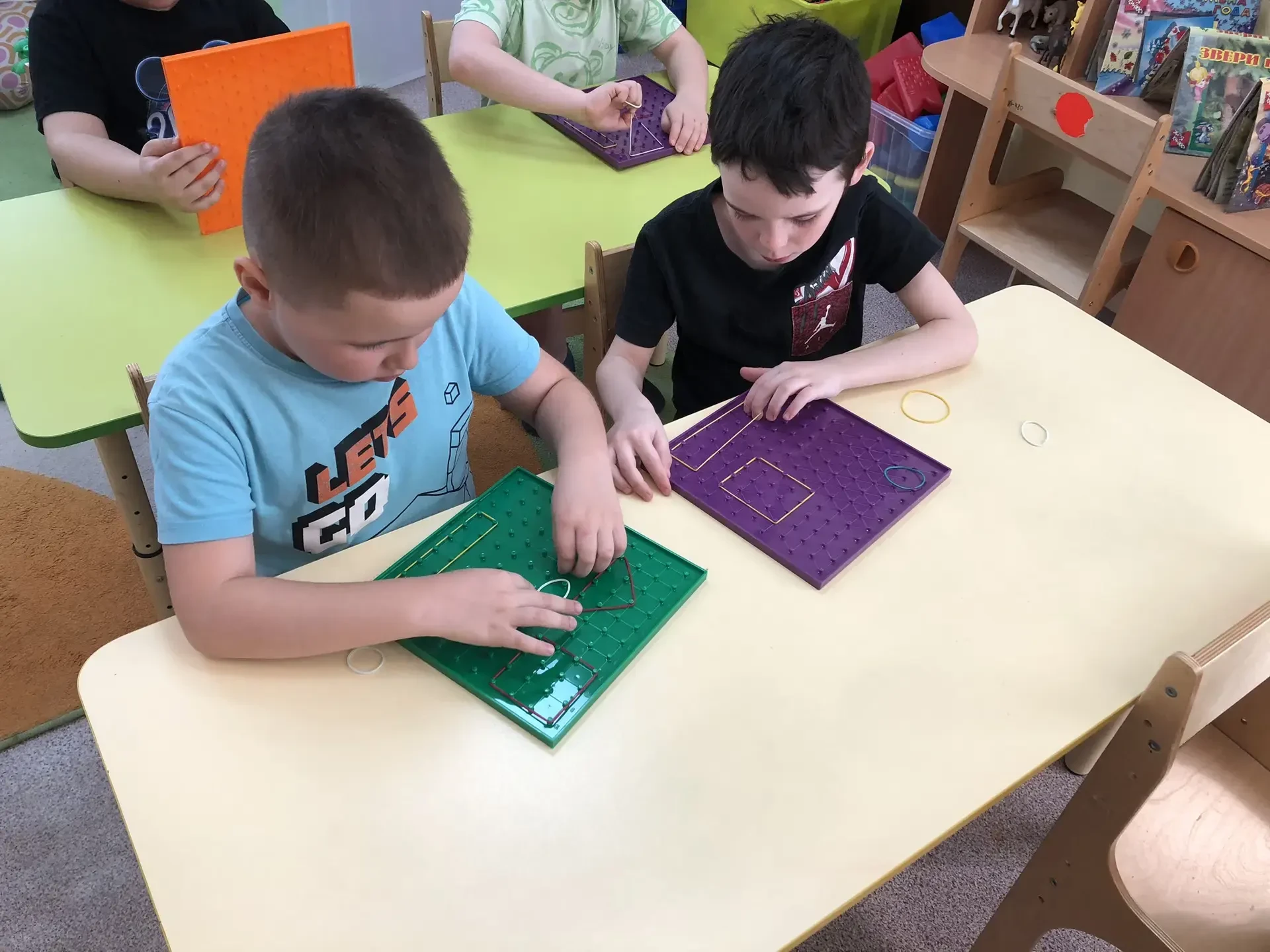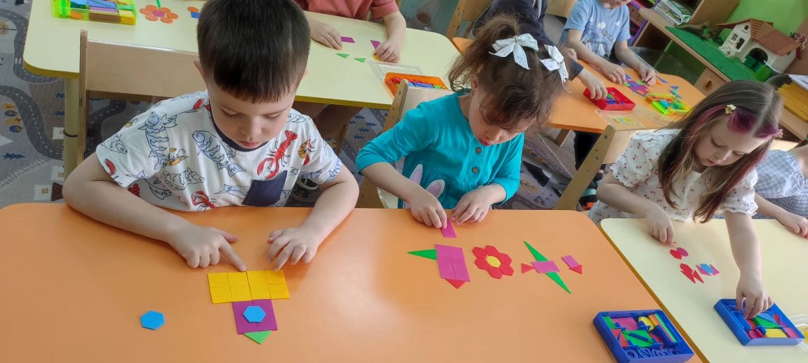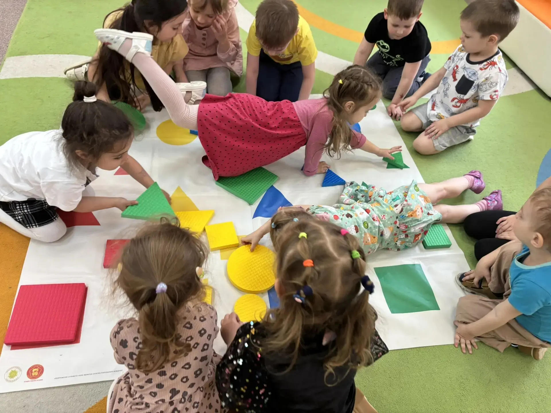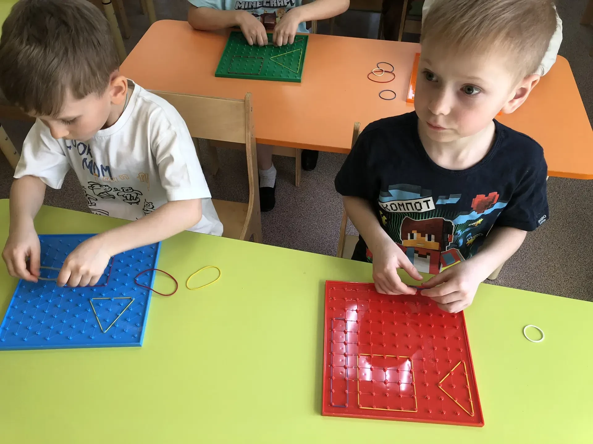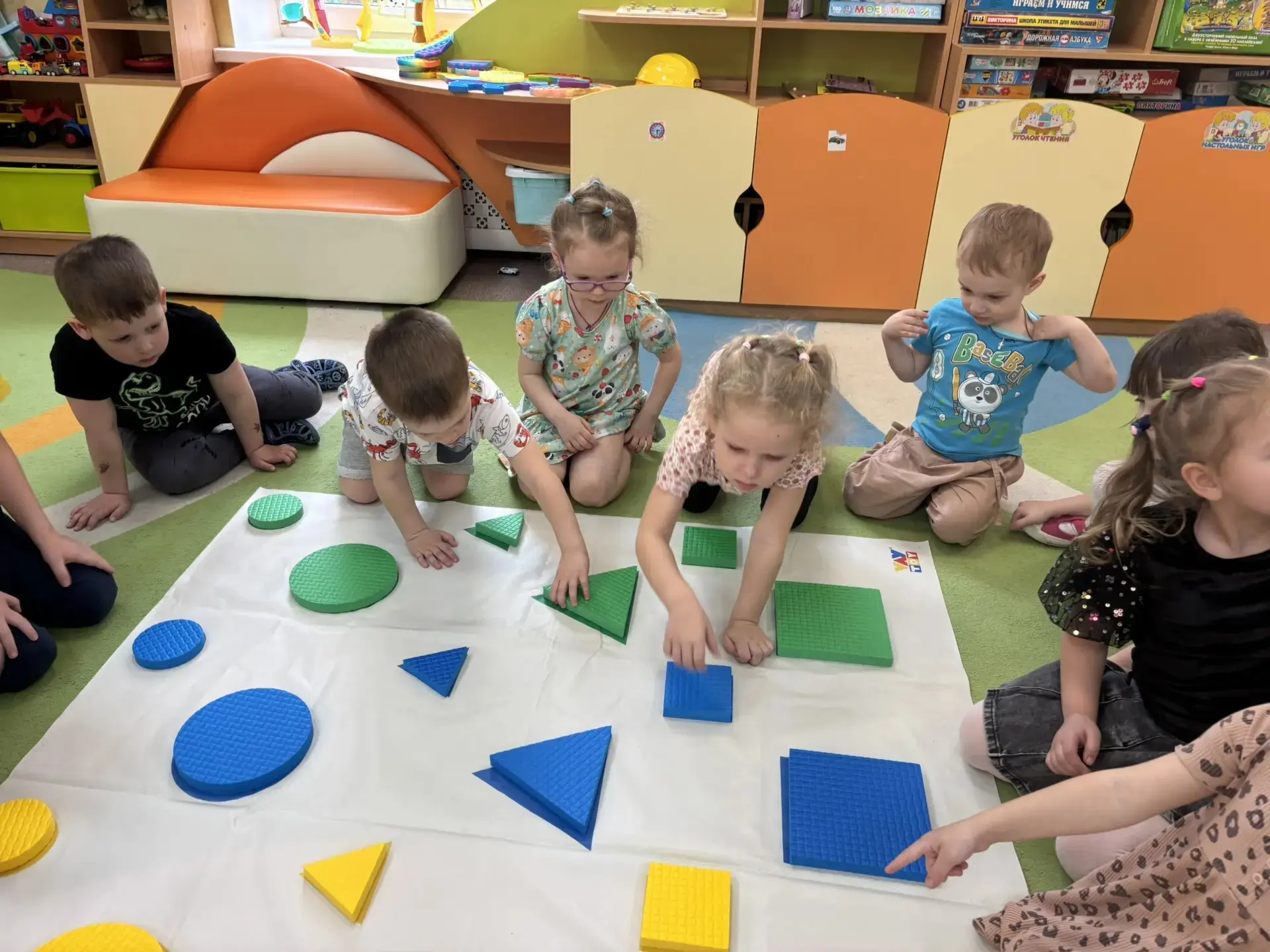 Дети учились сравнивать количества и определять «больше/меньше», узнавать и называть основные геометрические фигуры,формировал навыки сотрудничества, умение ждать своей очереди и вести себя в коллективе. Закрепляли навыки ориентироваться на ограниченной плоскости,воссоздавали сложные по форме предметы из отдельных частей по контурным образцам. Развивали восприятие в процессе выделения нескольких качеств предмета, сравнении предметов по форме и величине.