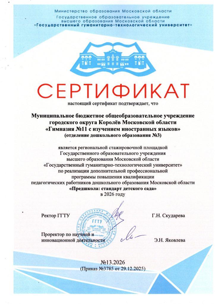 с января 2022 г. “МБОУ “Гимназия №11” ходит в ТОП-100 учреждений Московской области, реализующих проект “Предшкола: стандарт детского сада”