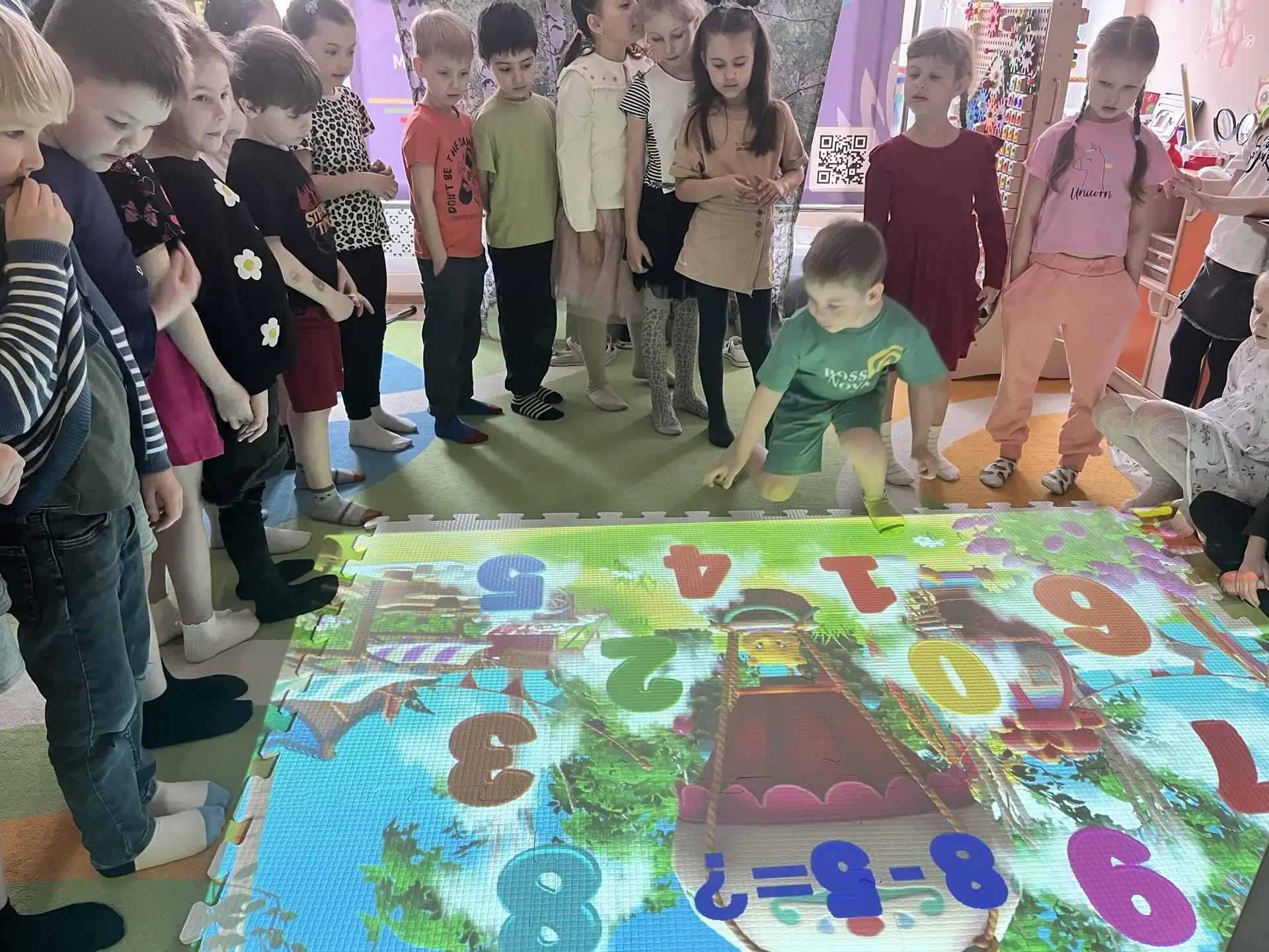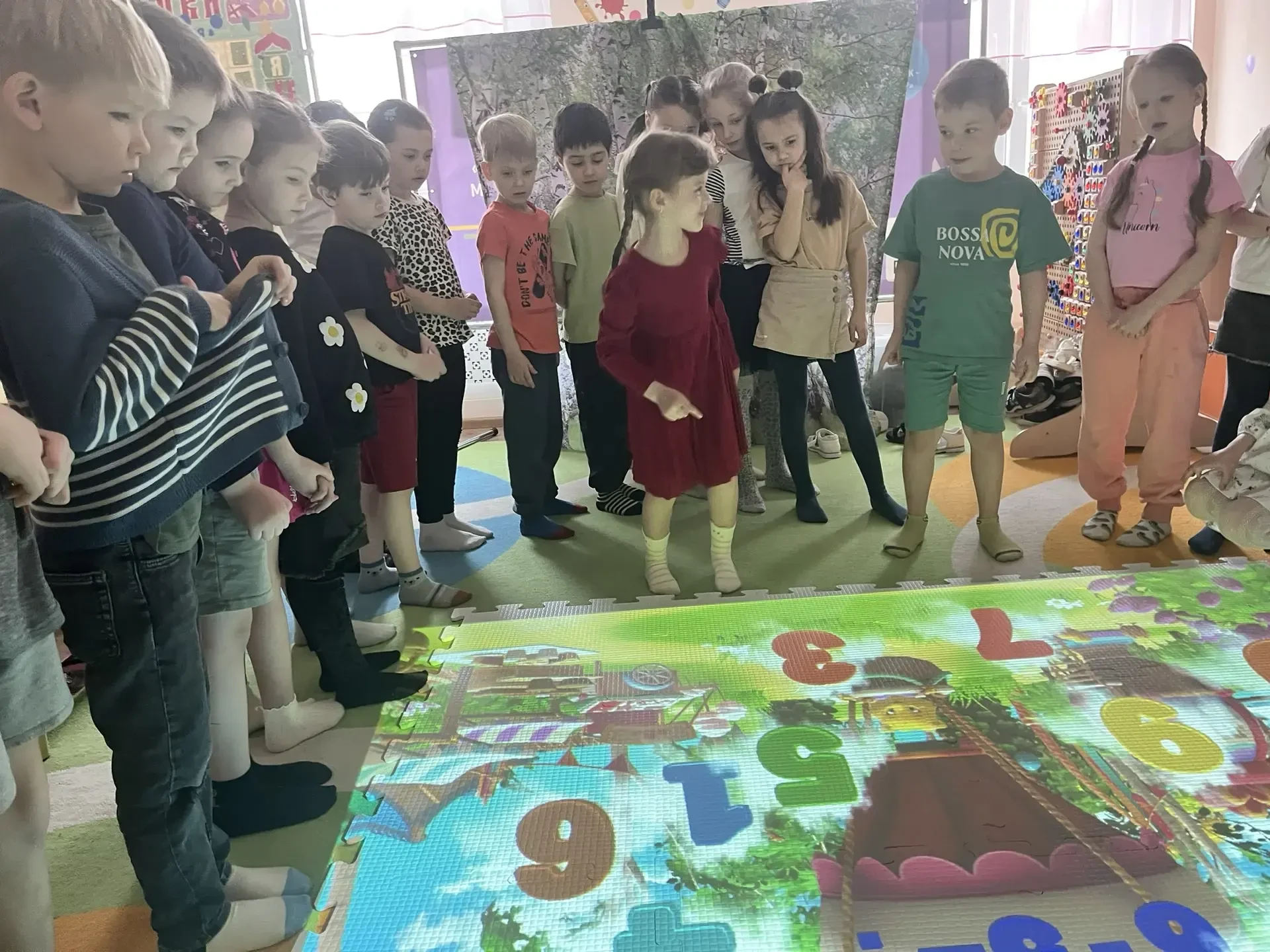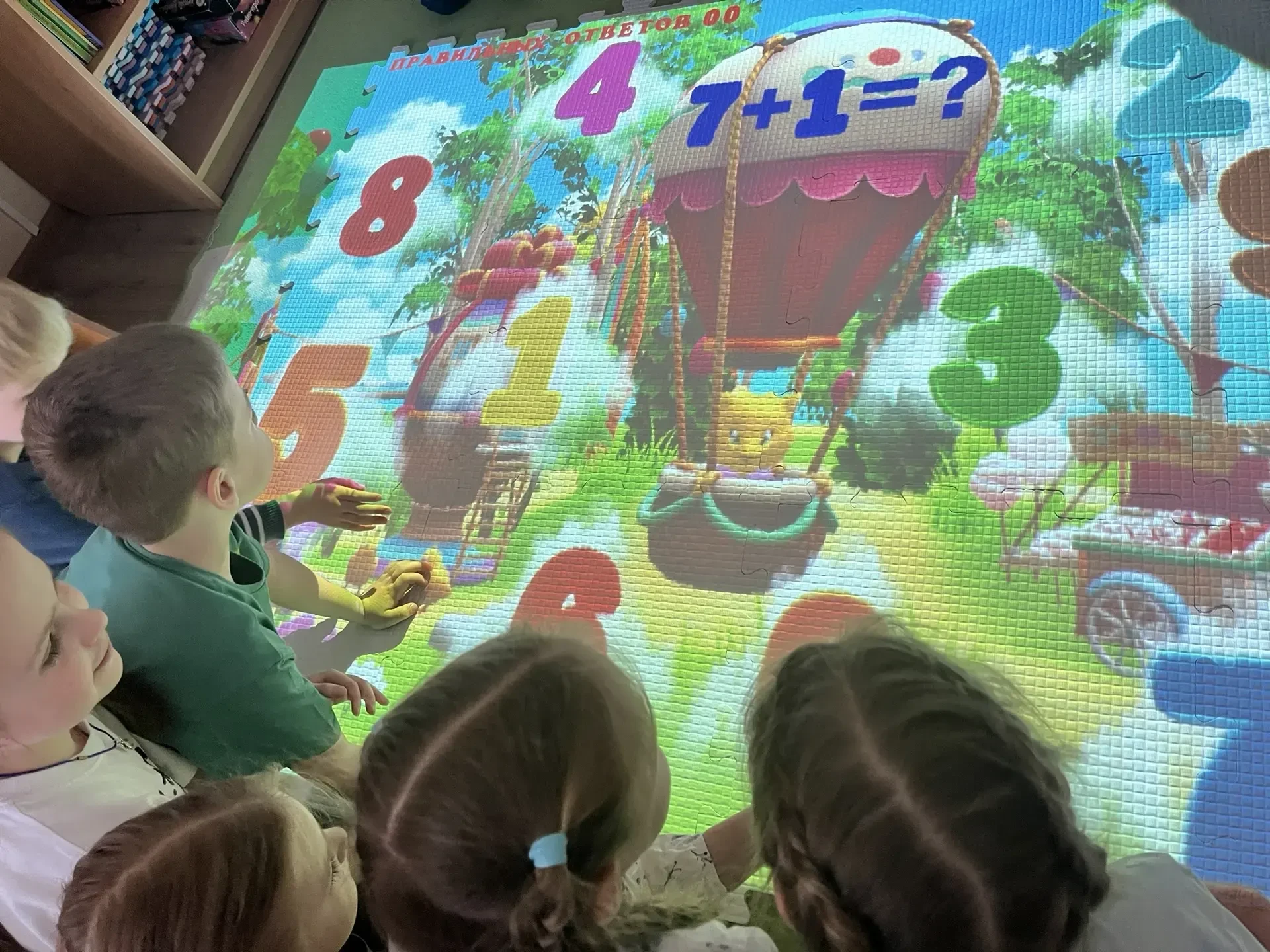 В рамках реализации регионального проекта «Предшкола: стандарт детского сада» на тематической неделе “Увлекательная математика” в 18 группе прошло необычное занятие по математике. Вместо скучных тетрадок и карандашей — интерактивный пол!