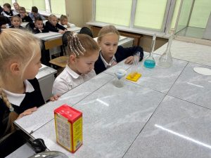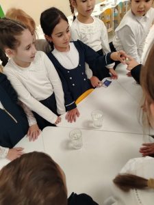 В рамках тематической недели “Экспериментариум: путь к познанию” ученики эффективной начальной школы приняли активное участие. Ребята 1 Э класса провели эксперимент, налив немного растительного масла в стакан с холодной водой и горячей. И оказалось, что масло всплывает пузыриками, затем пузырики собираются на поверхности в одну большую плёнку в холодной воде медленнее, чем в горячей. Ученики 3 Э класса и 4 Э класса побывали в гостях в химической лаборатории. ребята познакомились с процессом кристаллизации щёлочи с образованием осадка. Исследовательская работа была посвящена изменениям, которые происходят в процессе соединения кислот и щелочей. Наши гимназисты с удовольствием и интересом наблюдали за реакцией. Ученики убедились, что знания имеют широкое применение в повседневной жизни. Вот такие у нас эффективные ученики!